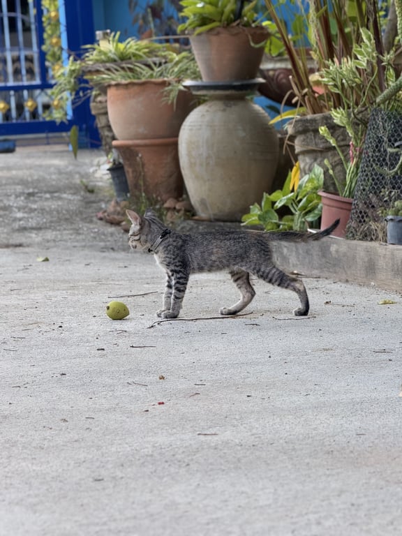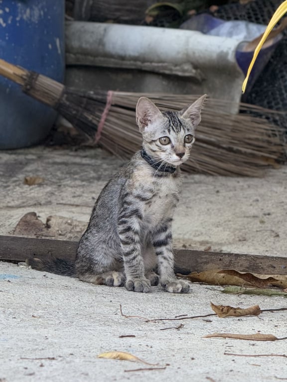 รอยตำหนิ: น้องใส่ปลอกคอเชือกสีดำ มีสลักชื่อบนแผ่นสแตนเลสไว้ว่า SOJU หูใหญ่ เท้าใหญ่ ลายสลิด แต่มีสีส้มแซมๆเล็กน้อย ตาสีเหลืองตรงขีดตรงแก้มสีน้ำตาลน้องขี้เล่น แต่ชอบนอนแอบ กินเก่งเวลากินจะมีเสียงชอบเอาเท้ามาในจานข้าว