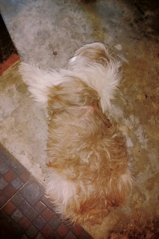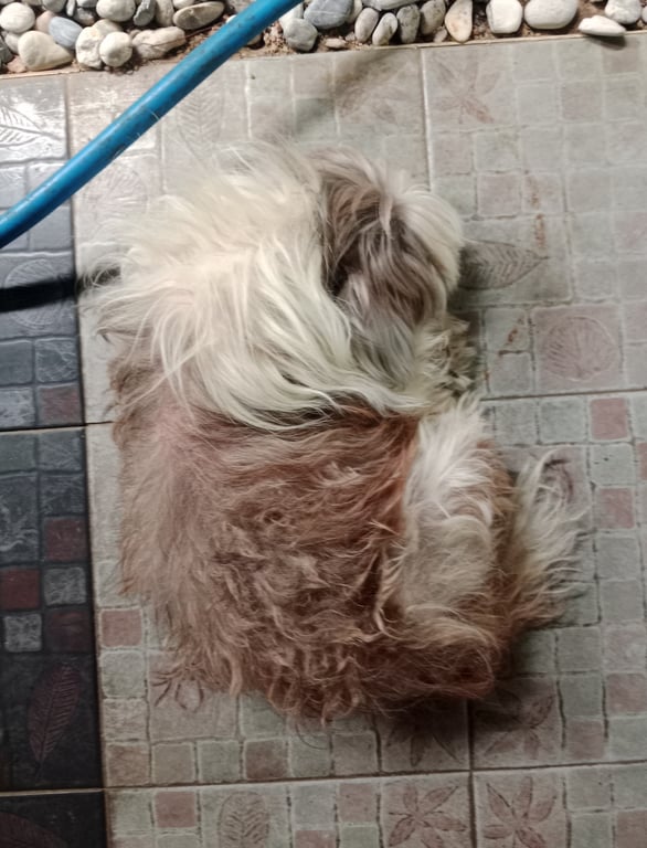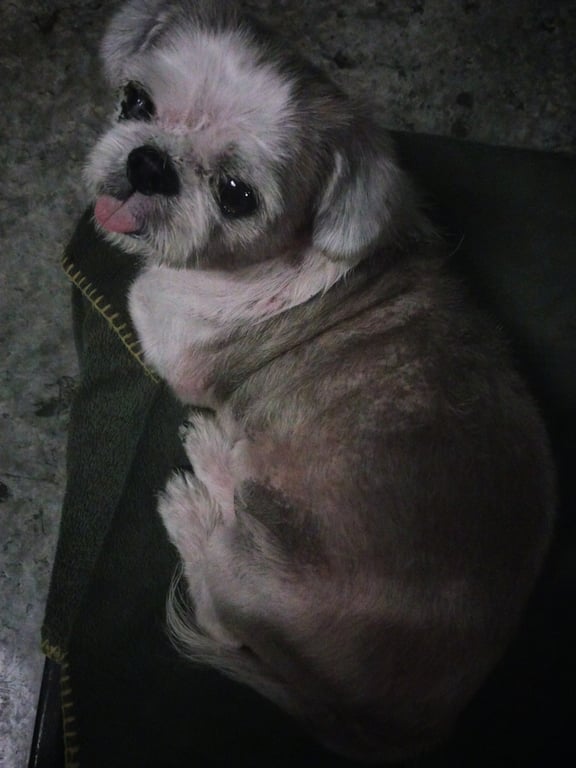 รอยตำหนิ: หนังเหี่ยว ดูเก่าๆตัวเล็กขาสั้นปัจจุบันขนยาวกว่าในรูปนิดหน่อย ไม่มีปลอกคอไม่ใส่ชุด ลิ้นห้อยๆ