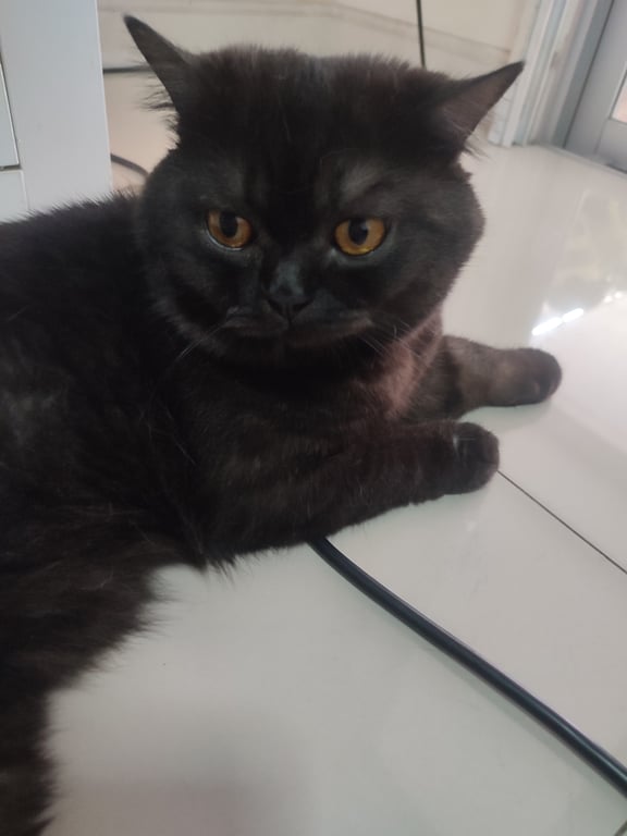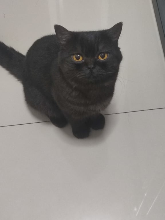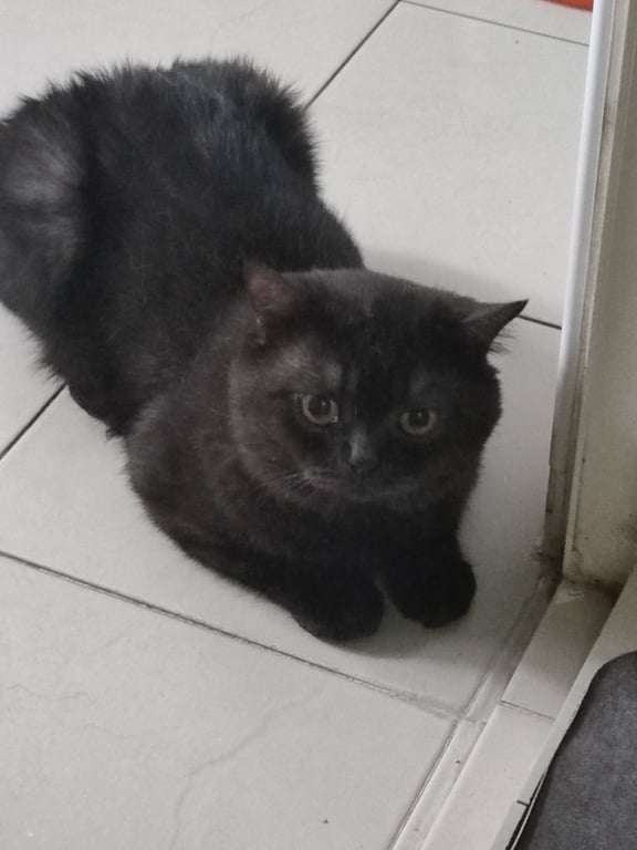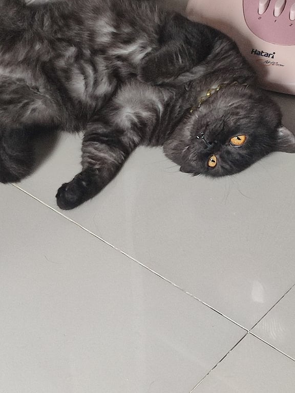 รอยตำหนิ: มีขนหน้าท้องสีดำแซมเทาน้องสวมปลอกคอสีม่วงเหลืองมีกระดิ่ง น้องค่อนข้างขี้กลัวและระแวงคนแปลกหน้า
