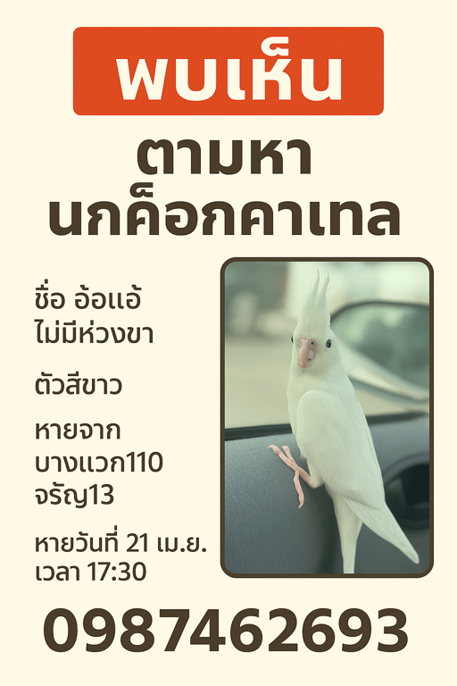 รอยตำหนิ: มีตาสีแดงขี้อ้อน / เป็นมิตร / ชอบโยกหัวเวลาหิวจะร้อง