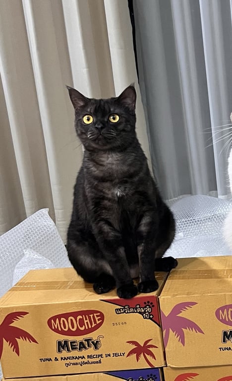 รอยตำหนิ: ตาเหลือง หางยาวตรง จมูกบาน มีขน2ชั้น ไข่ทองแดง อ้วน ชอบอ้าปากไม่ดุ ขี้ตกใจ ไม่ชอบเด็ก ไม่ชอบอุ้ม จับได้ ชอบให้เกาหลัง