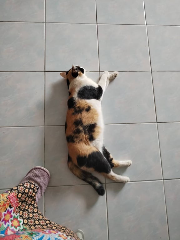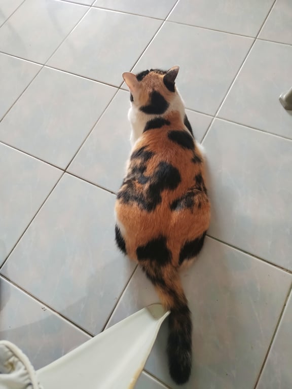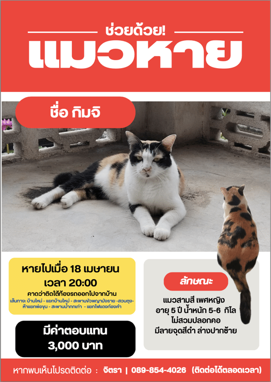 รอยตำหนิ: หน้าเหมือนใส่หน้ากากสีดำำ มีจุดสีดำใต้ปากด้านซ้าย ช่วงคอ อก ท้องสีขาวตัวอ้วน เหมือนแมวท้อง กลัวเสียงฟ้าร้อง ลมฝนมาก ไม่ชอบให้อุ้ม อ้อนเก่ง ตื่นกลัวง่าย