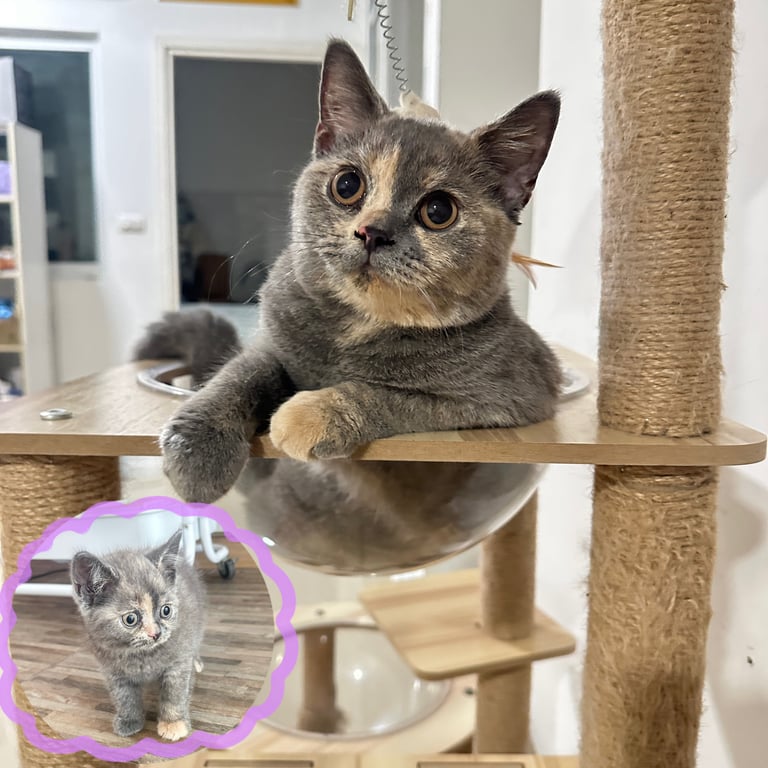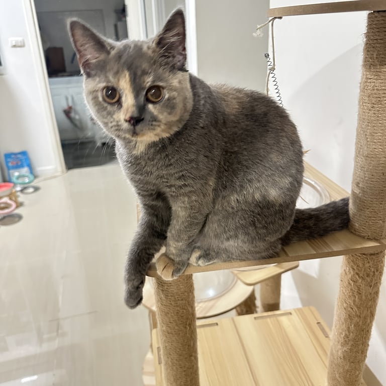 รอยตำหนิ: สีบลูตอตี้ มีสีครีมติดที่เท้าข้างซ้ายขี้อ้อน ให้อุ้ม เกิด 25 สิงหาคม 2567