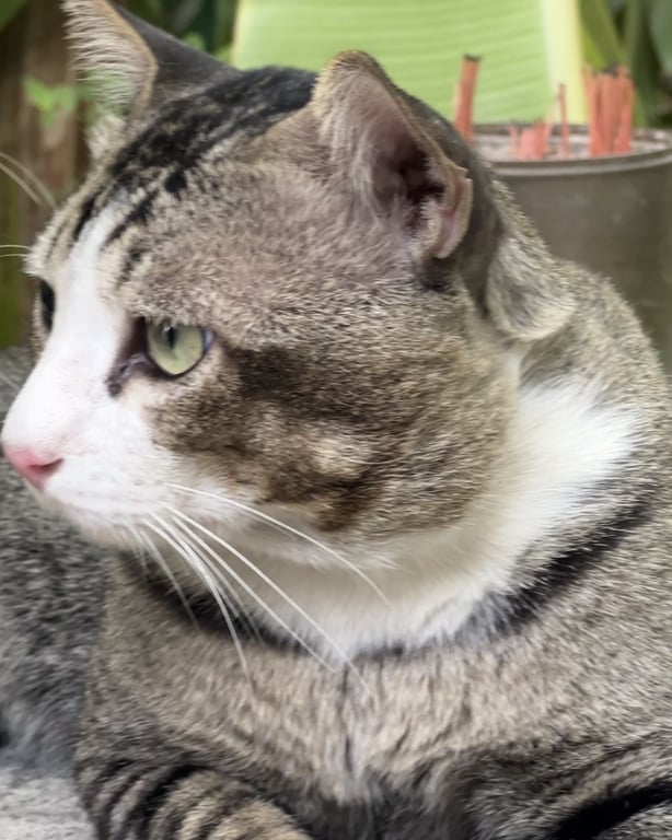 รอยตำหนิ: ลายสลิดใบหน้าขาว ตัวอ้วน หางยาว ไม่มีปลอกคอเป็นแมวจรที่ให้ข้าวเป็นประจำ หายไปประมาณวันที่ 18เมษายน68 กลัวคนไม่ให้จับ แต่ถ้ามีแมวเลียอาจจะยอม ชอบเดินย่อตัว ตัวแน่นๆ ปกติจะมากินข้าวที่บ้านตลอดแต่หายไปหลายวันเป็นห่วงน้องค่ะ
