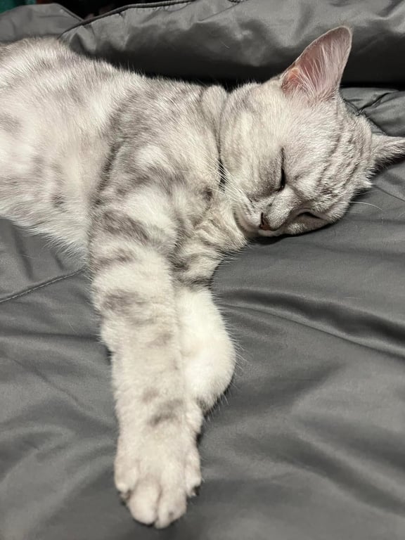 รอยตำหนิ: ถ้ามองดีดีตรงขาน้อง ลาย ขาวสลับเทาน้องนิสัยติดคน ถ้าเจอคตก็สนิทไม่วิ่งหนี จมูกน้องจะออกดำๆขึ้นเวลาร้อน ชอบกินแมวเลียมากๆ ร้องชอบเลียขนก่อนนอนชอบนอนพื้นเย็นชอบนอนที่เย็นๆ ตอนกลางวันชอบไปเดินป่าแถวๆบ้านและไปนอนบ้านคน (น้องหม่ใส่ปลอกคอ)