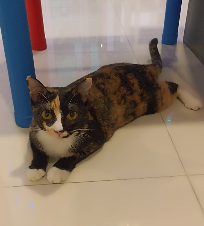 รอยตำหนิ: มีถุงเท้าสีขาวทั้ง 4 ขา , ใต้คอมีสีขาวคล้ายผ้ากันเปื้อนเข้ากับคนง่าย ซุกซน เสียงเล็กๆ