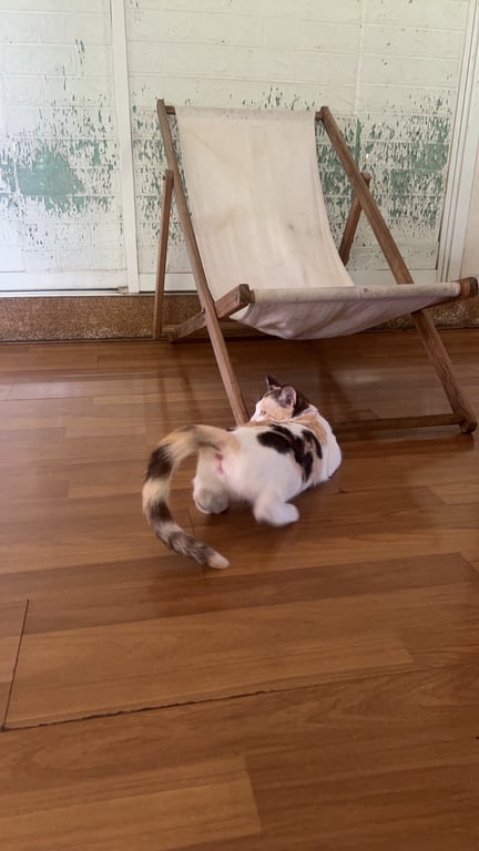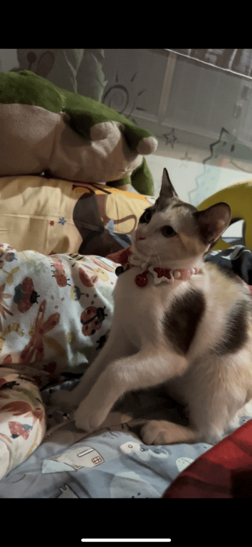รอยตำหนิ: ขาหลังขวา มีลายสีน้ำตาลขาเดียวอายุประมาณ 8 เดือน เพศ เมีย ลักษณะ สีขาวลายน้ำตาลส้ม ใส่เสื้อสีชมพู มีปลอกคอ พึ่งทำหมัน หายไปบริเวณหน้าซอย นวมินทร์ 68 แยก 8-6 ซอย 5 เมื่อวันที่ 24 เมษายน 2568