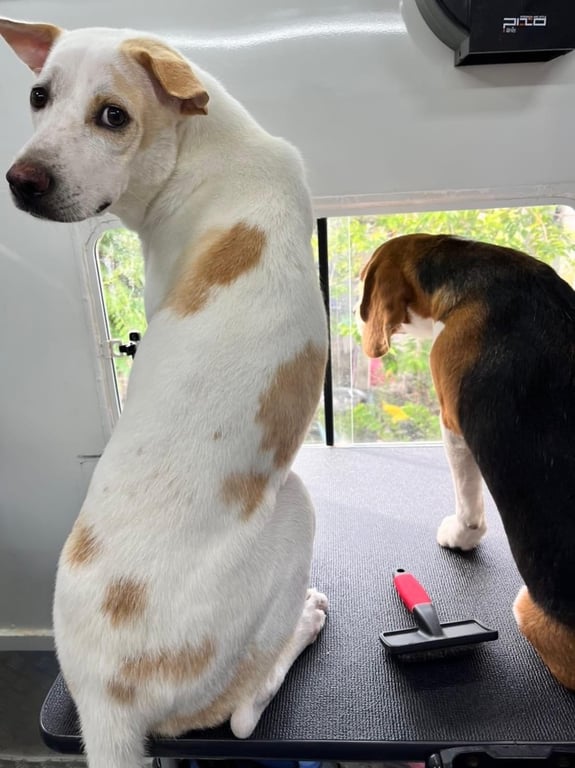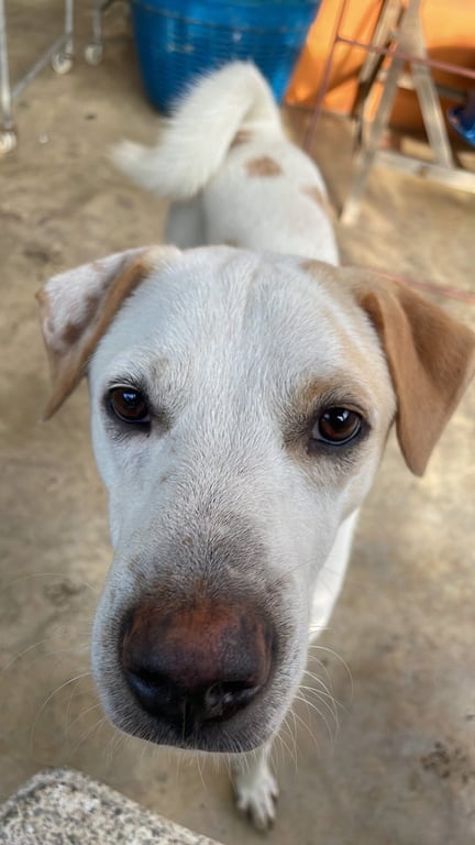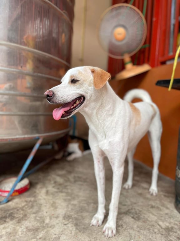 รอยตำหนิ: ตัวสูง ขายาว หูมีสีน้ำตาล บริเวณดวงตาแต้มสีน้ำตาล จมูกสีน้ำตาลขี้กลัวเสียงพลุ ประทัด ฟ้าร้อง แต่เชื่องมาก ไม่กัดคน น่ารัก