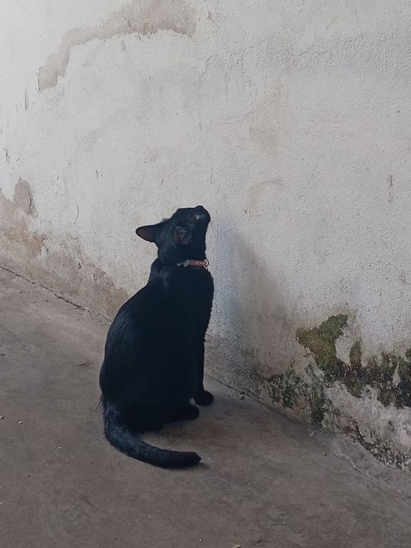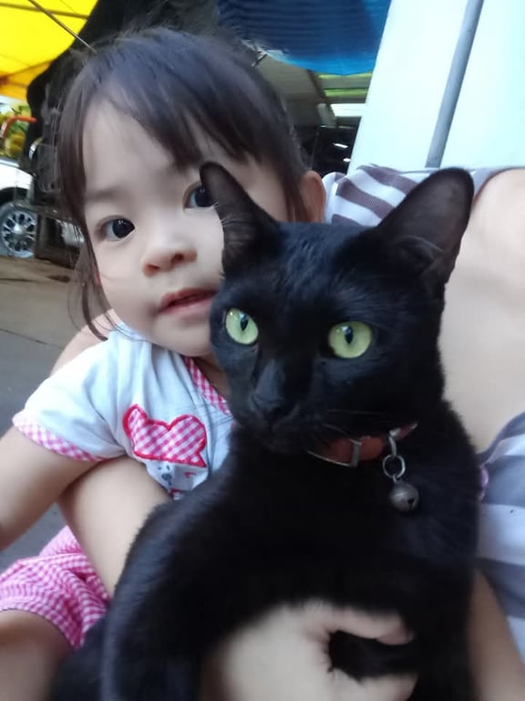 รอยตำหนิ: มีขาหลังเป็นแผลนูนที่ด้ายซ้ายตัวดำทั้งตัวไม่มีจุดขาวเลยสักนิดนึงอาจจะมีบริเวณหูไปถึงตานิดเดียวตัวดำทั้งตัวตัวใหญ่เพศเมียมีสีดำแค่นิดหน่อยบริเวณหูมีปอกคอสีชมพูเรืองแสงรูปโบว์ขาหลังด้ายซ้ายจะนูนๆหน่อยเพราะเคยเป็นแผลฟันจะหักไปซีนึงด้านซ้ายของเราด้านขวาของแมวน้องขี้อ้อนถ้าสนิทถ้าไม่สนิทน้องจะวิ่งหนีทันที