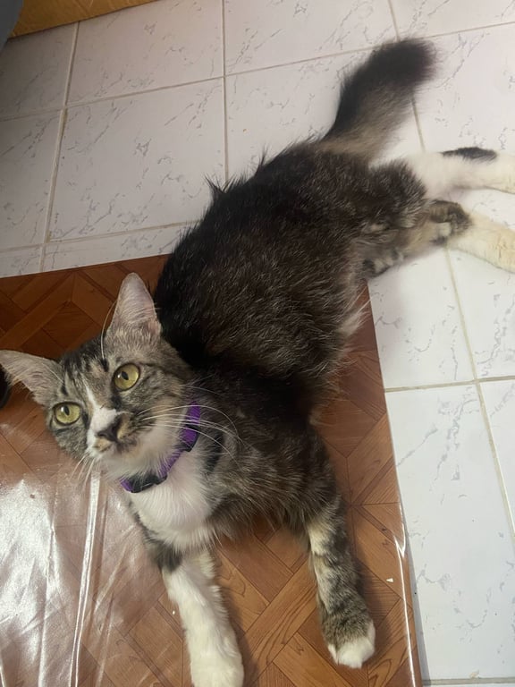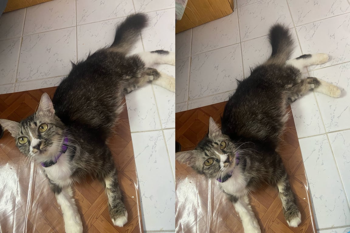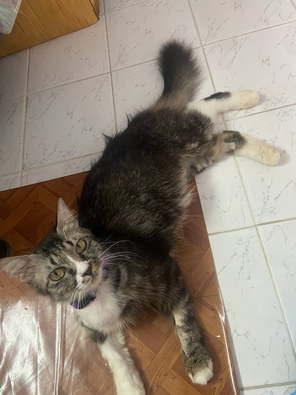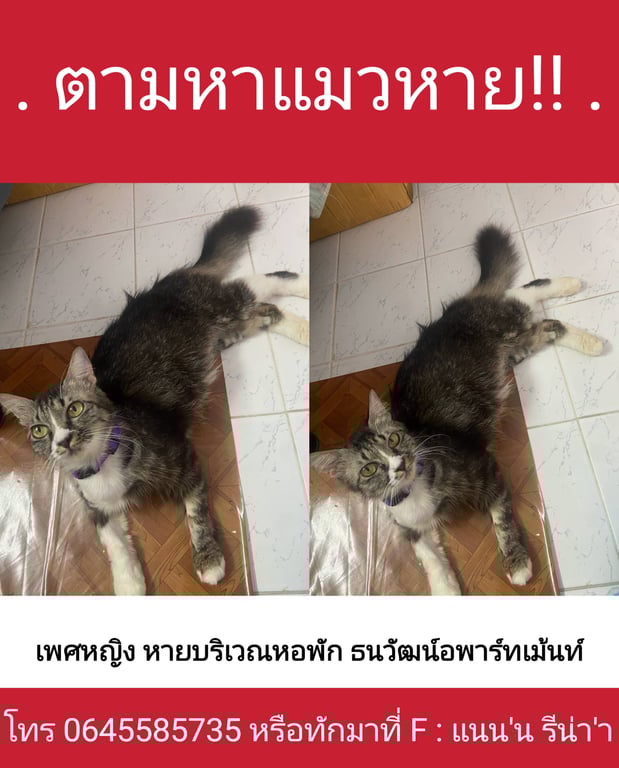 รอยตำหนิ: มีปลอกคอม่วงมีแผลบนหลังแถวหาง