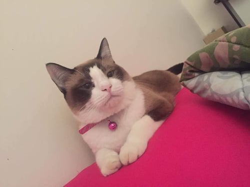 รอยตำหนิ: หูสีน้ำตาล หน้าสีขาว ขาหน้าสีขาวขี้กลัว ไม่ค่อยให้คนแปลกหน้าจับ