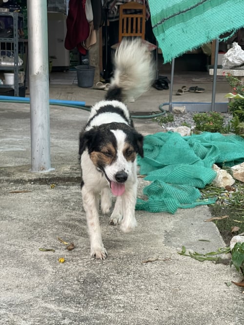 รอยตำหนิ: หน้าลายขาวดำน้ำตาล ไม่ได้ใส่ปลอกคอไม่เคยออกจากบ้าน