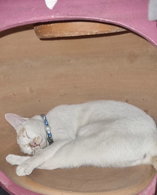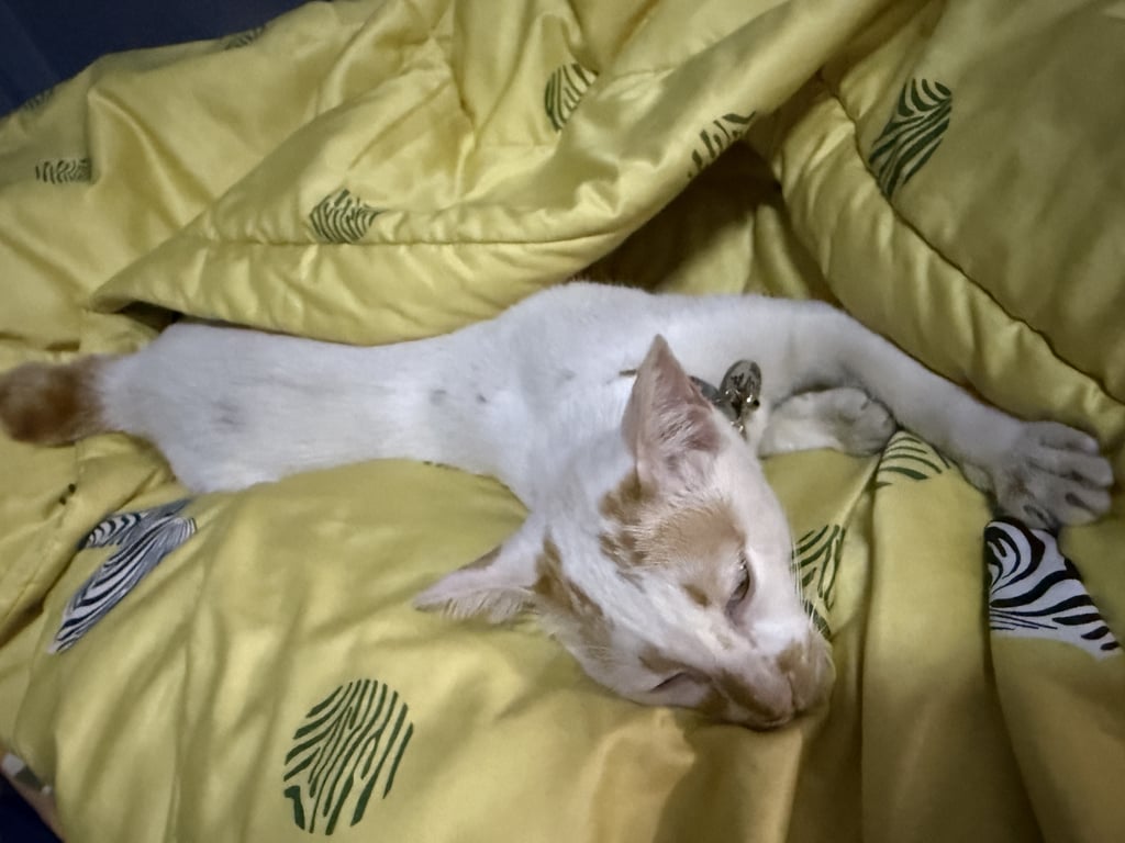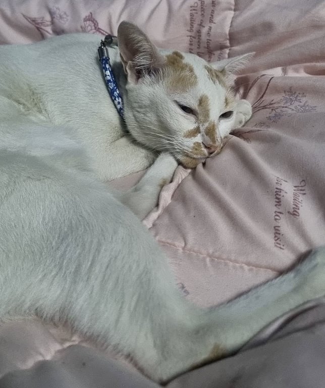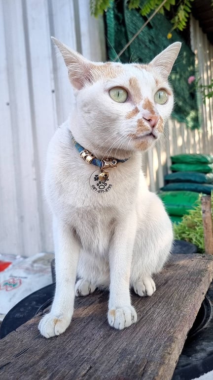 รอยตำหนิ: หางกุด สีส้มมีปลอกคอ สีฟ้า มีชื่อ เบอร์โทร