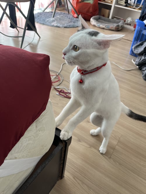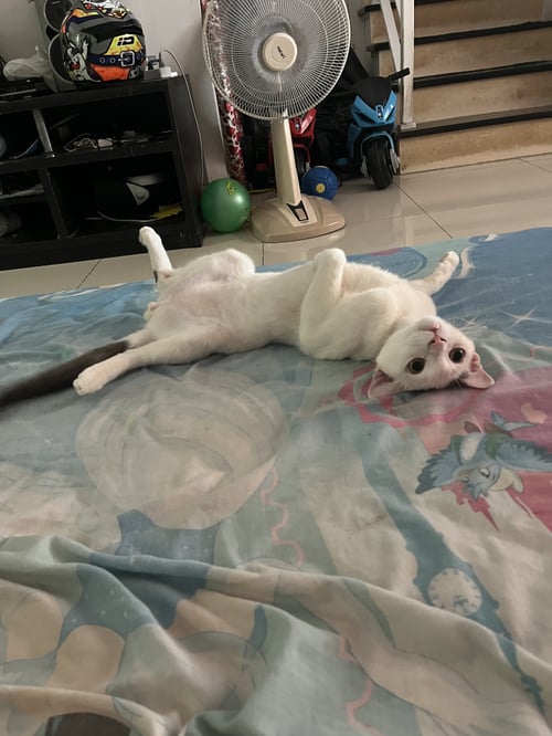 รอยตำหนิ: ตัวขาวสีดำ2จุดที่หัว แล้วหางครึ่งหนึงสีดำ