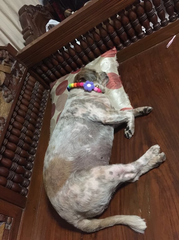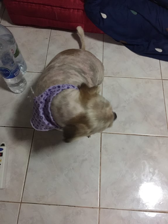 รอยตำหนิ: ขนเตียนๆมีลายดำๆจุดตรงหลังเยอะๆใจดี ตัวเตี้ย อ้วน ขาเล็ก ฟันเหยิน