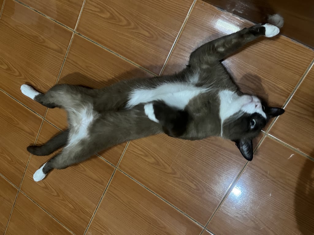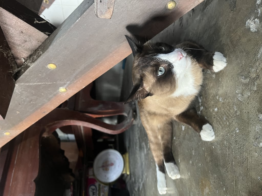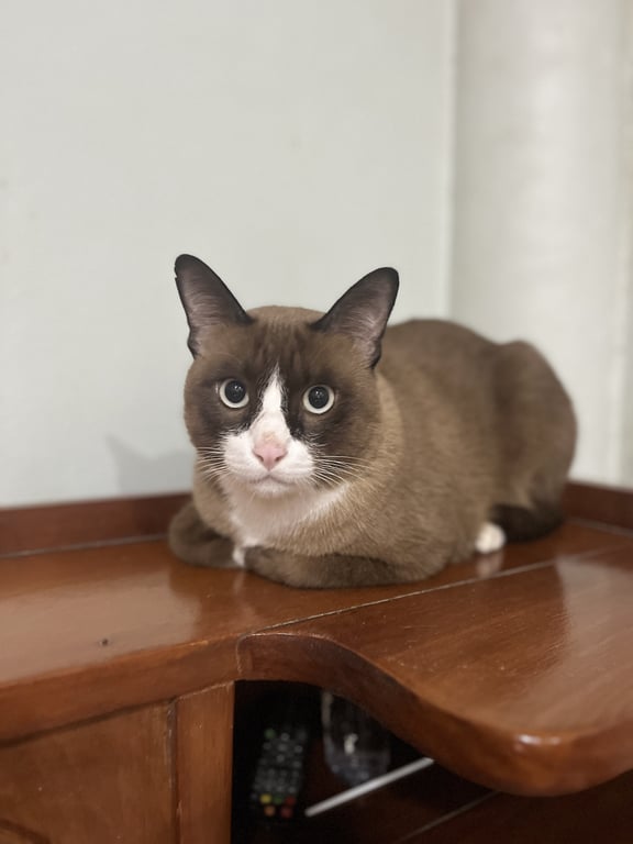 รอยตำหนิ: หน้าแสกกลางสีขาว ตาโต ช่วงอก/ท้องเป็นสีขาว มีถุงเท้าสีขาวทั้ง4เท้านิสัยขี้หงุดหงิด แต่ไม่ดุ ไม่ค่อยสู้แมวด้วยกัน กินเลือกต้องเปลี่ยนเมนูอาหารบ่อยๆ