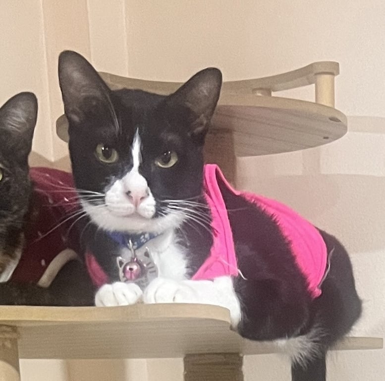 รอยตำหนิ: จมูกสีขาว ตัวสีดำ หลังขามีขนสีดำหนึ่งจุด ไม่มีปลอกคอ เบอร์โทรศัพท์เจ้าของ 093-134-9942ขี้กลัว ขี้อ้อน ไม่ดุร้าย