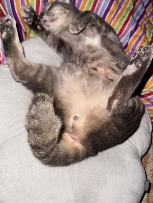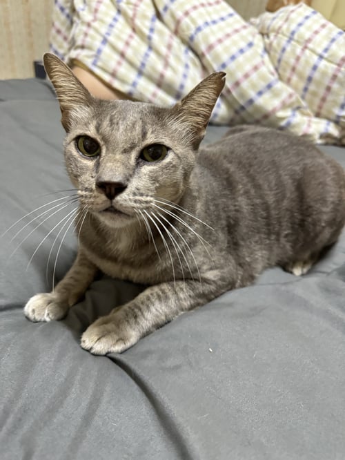 รอยตำหนิ: หางกวัก ไม่ได้ใส่ปลอกคอ มีลายเป็นสร้อยตรงคอ ลายสลิด หูข้างขวาแหว่ง