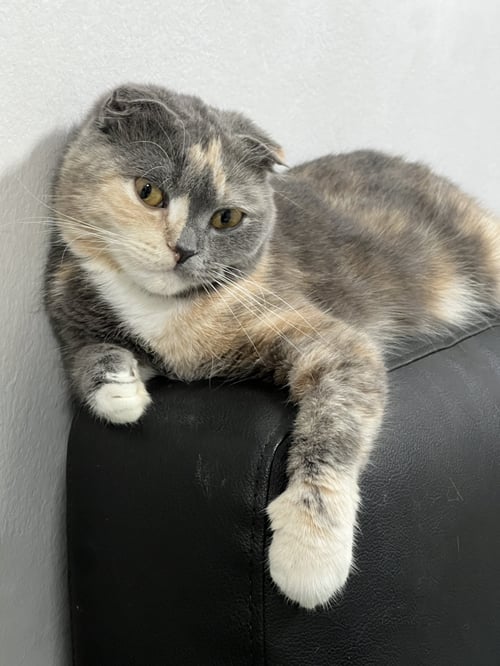 รอยตำหนิ: มีถุงเท้าที่เท้า หูพับดุร้ายกับคนแปลกหน้า เวลาตื่นกลัวจะดีดขึ้น ไม่ยอมให้ใครจับนอกจากเจ้าของ
