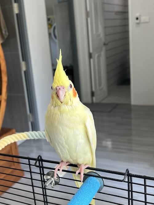 รอยตำหนิ: กำลังผลัดขนนกเชื่องไม่กัด ร้องเพลงได้พูดได้ แต่น้องขี้กลัวมาก ปกติไม่ค่อยเล่นกับคนแปลกหน้า