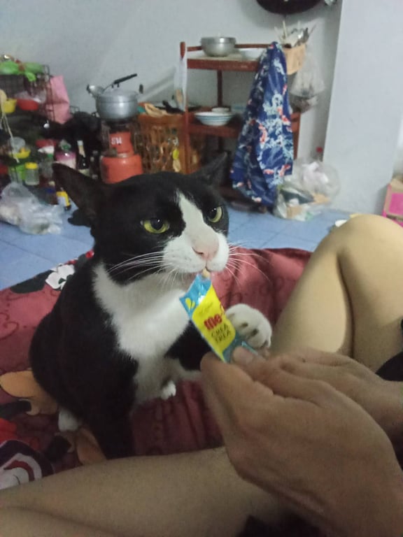 รอยตำหนิ: 2เขี้ยวหน้าด้านบน บิ่นที่ปลายเล็กน้อย และขนบริเวณคิ้วจะบางกว่าที่อื่นพุงย้อยเวลาเดิน ชอบกินแมวเลียมาก และชอบกินปลาทูปลาซาบะ