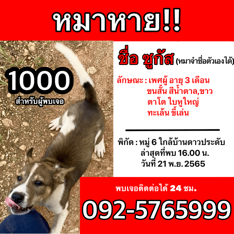 รอยตำหนิ: หางสีขาว น้ำหนักประมาณ 5-6กก.