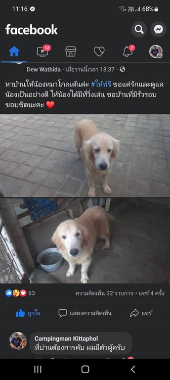 รอยตำหนิ: มีแผลที่ขาขวามีปลอกคอลายพรางสีเหลือง น้องอายุมากแล้ว