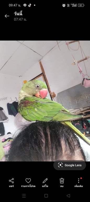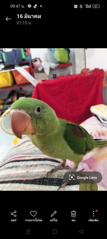 รอยตำหนิ: น้องตัวสีเขียวปีก2ข้างมีแต้มสีแดง..มีหว่งขาที่ข้อขา..เบอรโทร..และระหัส .ขาน้อง..เป็นแก้วโม่งอินเดียขี้อ้อน ติดคนง่าย ร้องเสียงยังไม่ดังเท่าไหร่..กำลังเริ่มหัดพูดหัดเรียก หลุดเมื่อเช้า. ตอน8.30น.หากผุ้ใดพบเห็นรบกวน ติดต่อกลับด้วย ..มีสินน้ำใจให้เล็กน้อยขอบคุนค้ะ