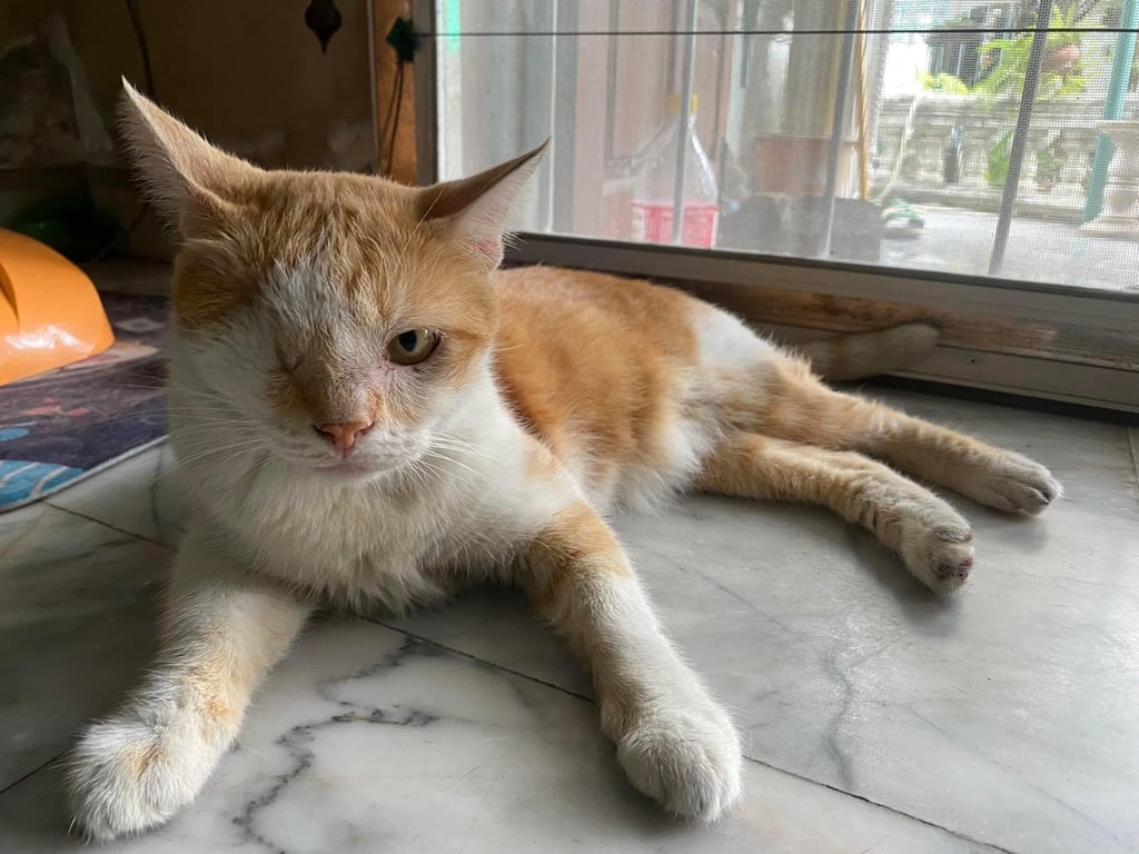 รอยตำหนิ: ตาบอด 1 ข้าง มีรอยกากบาทข้างที่บอด เชื่อง ขี้อ้อนน้องชื่อ กาวา น้องเป็นแมวตาบอด 1 ข้างค่ะ