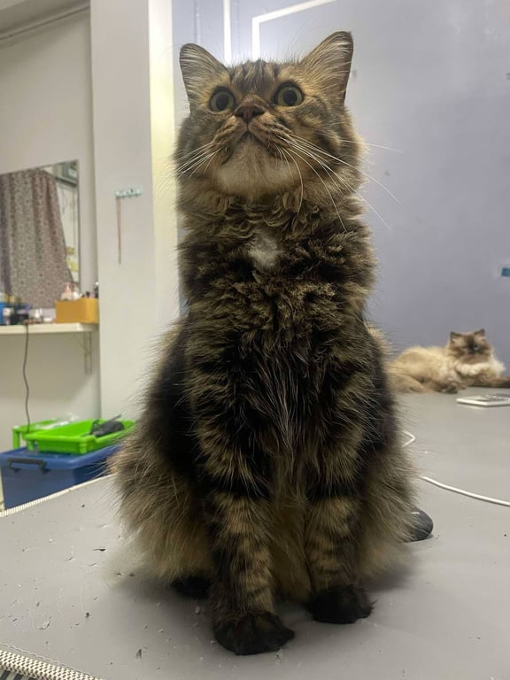 รอยตำหนิ: ตัวใหญ่กว่าแมวทั่วไป ไต้คางมีจุดสีขาว