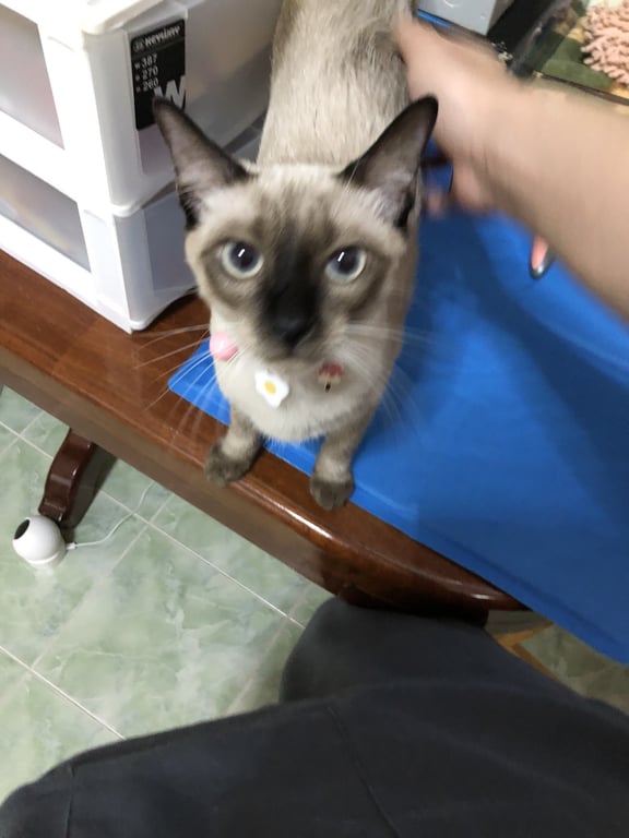 รอยตำหนิ: บริเวณต้นขาด้านซ้ายมีรอยแผลผ่าตัด จนไม่ไปทางเดียวกัน เนื่องจากรอยเย็บปลายหางจะเป็นจะงอยเล็กๆ