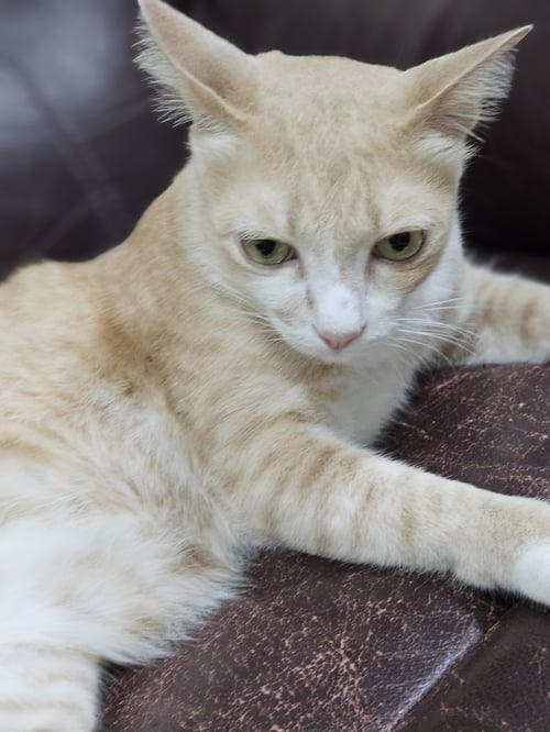 รอยตำหนิ: หางสั้นตรงไม่ม้วนมีสีขาวที่คอ ที่จมูก ไม่มีปลอกคอ ตัวอ้วน ขาสั้น