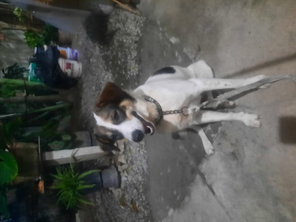 รอยตำหนิ ปลอกคอสีดำตัวหนังสือภาษาอังกฤษสีขาว หน้าเหมือนเเพนด้าหูตก