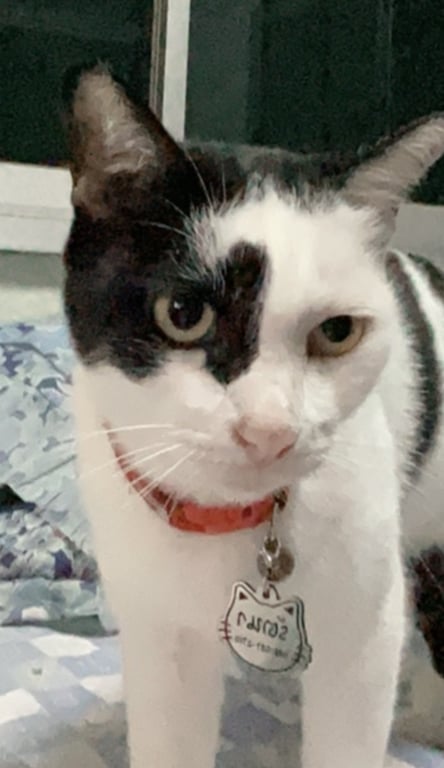 รอยตำหนิ: มีรอยแผลตรงต้นคอข้างบนคุ้นคน ขี้อ้อนกับเจ้าของ ชอบนอนผ้านิ่มๆ