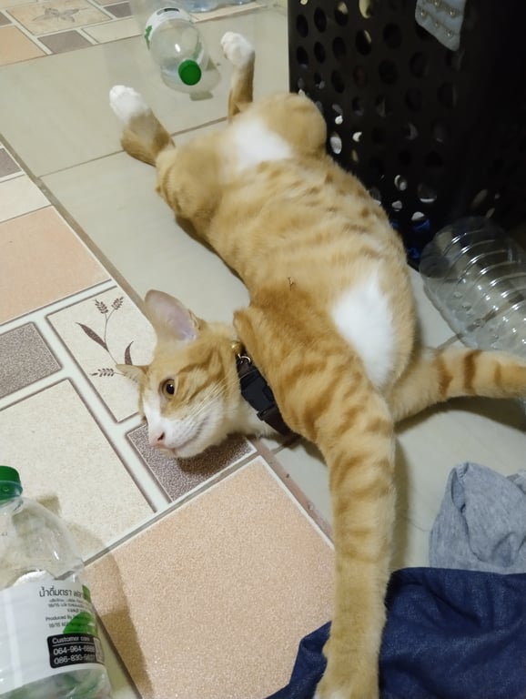 รอยตำหนิ: หากวัก อุ้งเท้าทั้ง4 สีขาวใส่ปลิกคอสีน้ำตาล มีสายจูงรัดตัวสีน้ำเงิน นิสัยน้อง ไม่ค่อยร้อง เงียบๆ