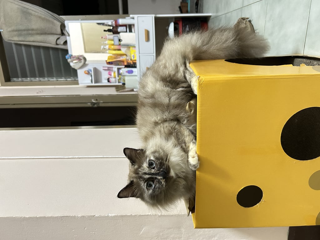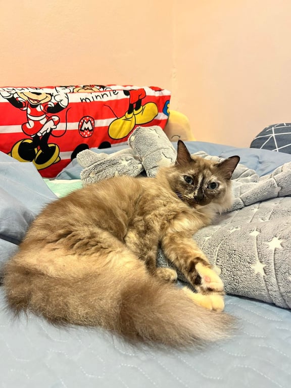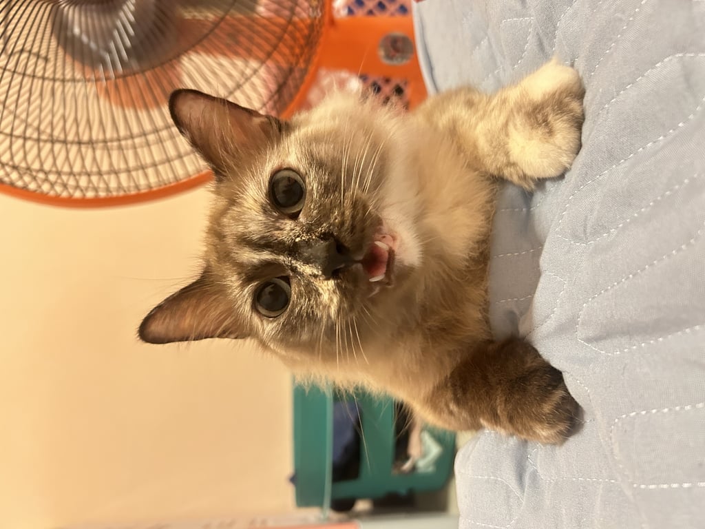 รอยตำหนิ: ใต้คางจะเเบ่งสีเป็น2สี สีขาวกับสีน้ำตาลอ่อนน้องขี้กลัว กลัวคนแปลกหน้ากลัวเสียงรถ