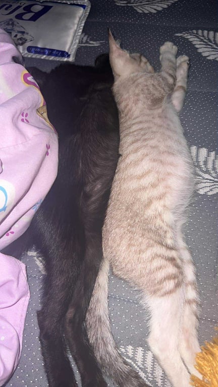 รอยตำหนิ: ปายหางสีดำ ตาสีเหลืองดำแมวดำชอบนอน แมวขาวชอบเล่น ชอบอยู่ใกล้คน