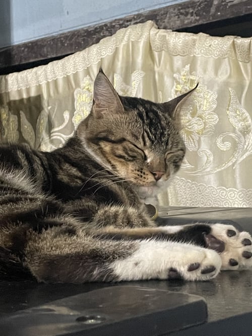 รอยตำหนิ: มีถุงเท้า4ข้าง ด้านหน้าสั้น ด้านหลังยาว ใส่ปลอกคอสีฟ้ามีกระดิ่งสีเหลือง มีชื่อและเบอร์โทรพ่อน้องติดอยู่นิสัยร่าเริง หวงตัวไม่ชอบให้จับ