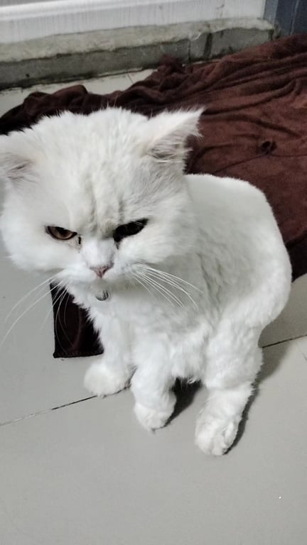 รอยตำหนิ: มีรอยเเผลที่ขาหน้าช้ายปลอกคอสีเเดง ตัดขนสั้น หน้าหวานเหมือนตัวเมีย
