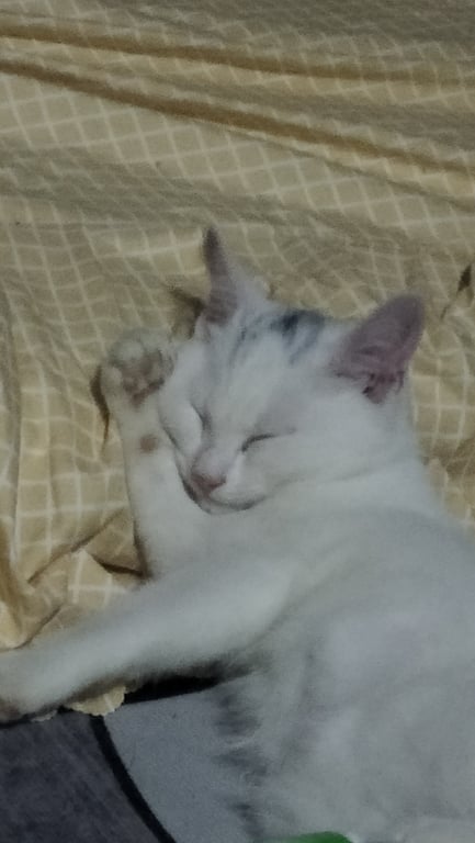รอยตำหนิ: บนหัวมีลายสีดำ จมูกชมพูจะร้องเก่ง อึไม่ค่อยเป็นที่ จับหนูเก่งชอบปีนดื้อซน