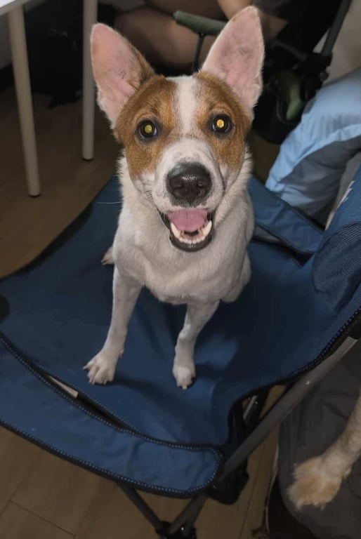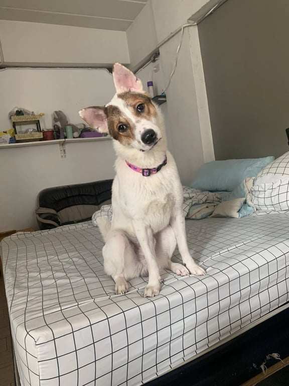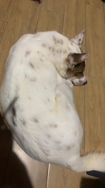 รอยตำหนิ: หูตั้ง ตัวสูงประมาณเข่า ลายจุดน้ำตาล ไม่สวมปลอกคอ ที่ใบหูสองข้างมีรอยสักทำหมันกลัวคนมากๆ ไม่กล้ากินของจากคนเเปลกหน้า