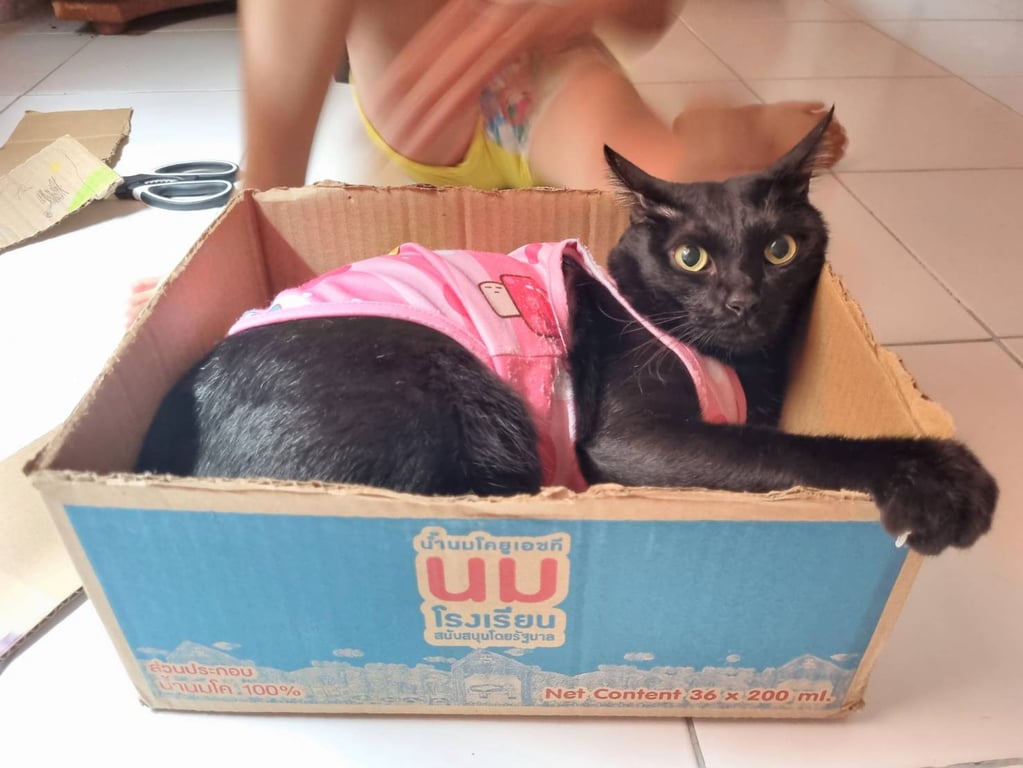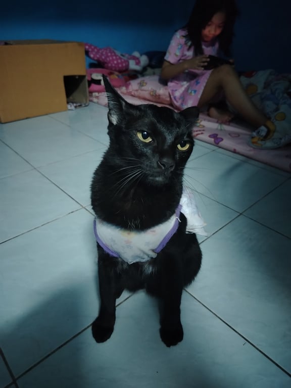 รอยตำหนิ: มีสีขาวที่ท้อง คิ้วล้าน เรียกเค้าว่าแมวพี่คาว หวงตัวใส่เสื้อ ไม่ใส่ปอกคอ