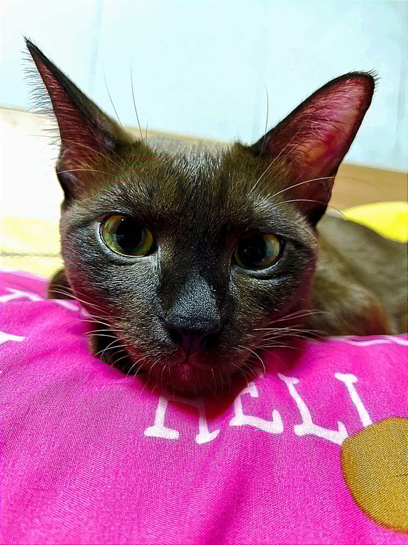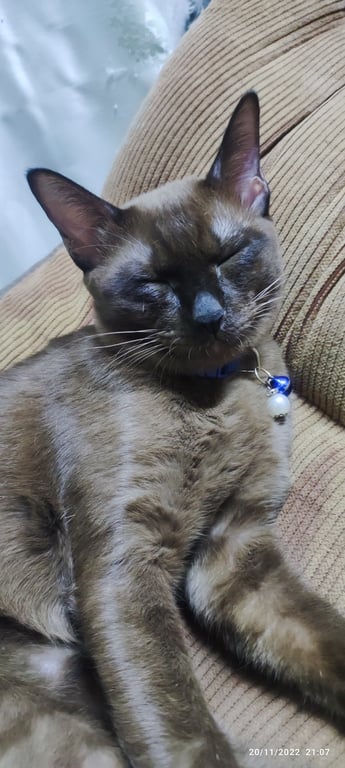รอยตำหนิ: สีเทาดำทั้งตัวไม่มีสีอื่นปนน้ำหนัก3.5กิโลกรัมสีเทาดำทั้งตัว นิสัยเจากับคนง่ายแต่ดุ ไม่ขอบให้จับ