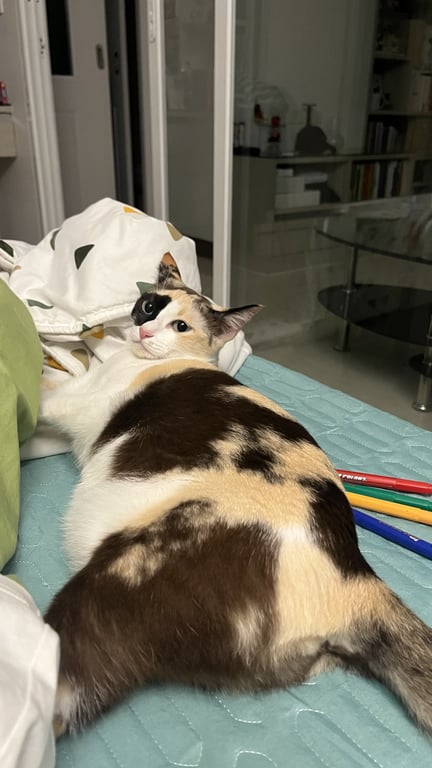 รอยตำหนิ: ปื้นน้ำตาลที่หน้าข้างขวา / หางกุด