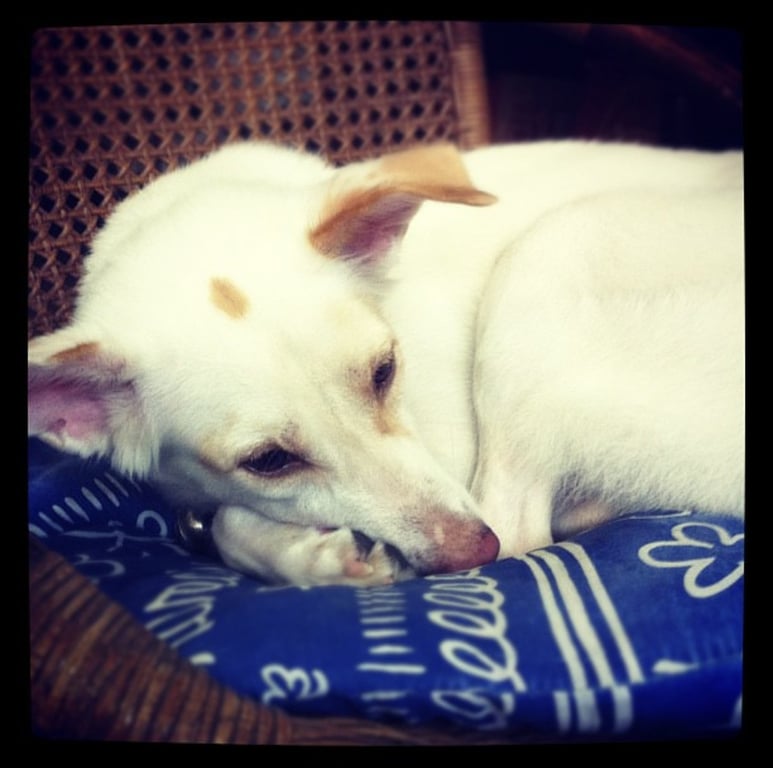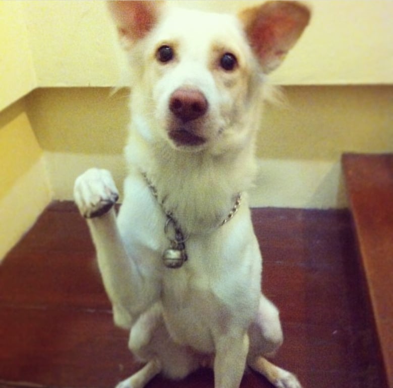 สี: ตัวขาว ที่หูซ้ายสีน้ำตาลอ่อน กลางหน้าผากมีแต้มสีน้