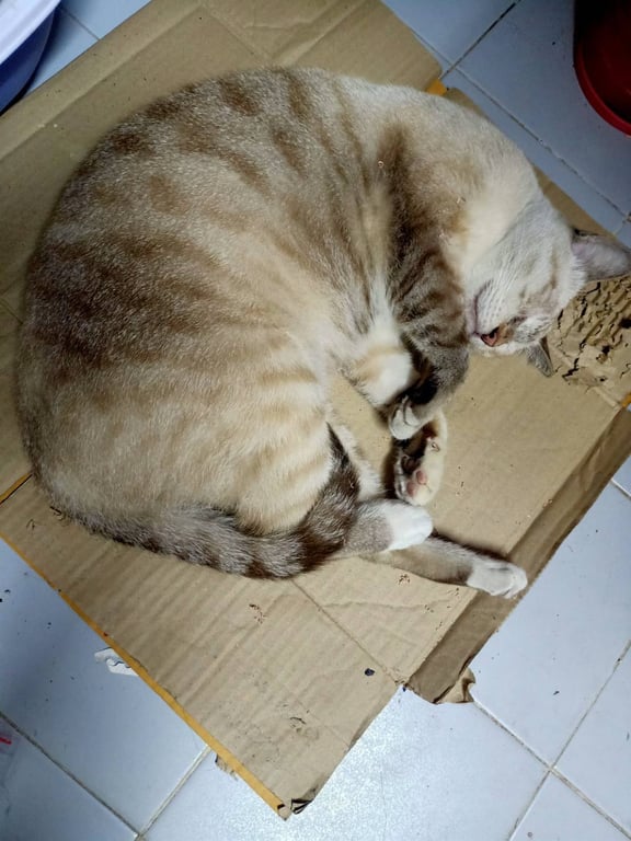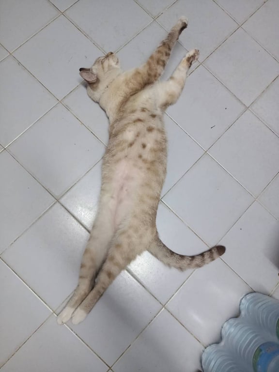 รอยตำหนิ: มีรอยผ่าตัดที่หน้าท้อง ปลอกคอเป็นผ้า มีแท็กค้นหาหุ้มยางสีฟ้าค่อนข้างเป็นมิตร แต่ไม่ชอบให้อุ้ม