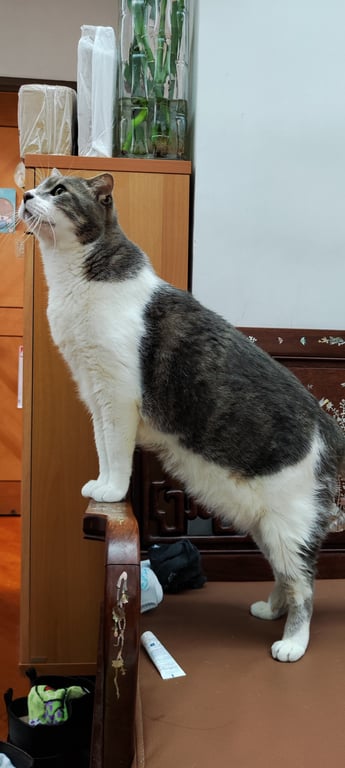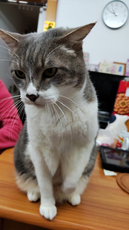 รอยตำหนิ: ขนลำตัวสีเทา หูตกข้างนึง จมูกรูปหัวใจอ้วนมากแต่ตกใจง่าย อาจจะต้องค่อยๆ เข้าใกล้ ชอบกินของว่างแต่ไม่แน่ใจเมื่ออยู่ท่ามกลางคนแปลกหน้า