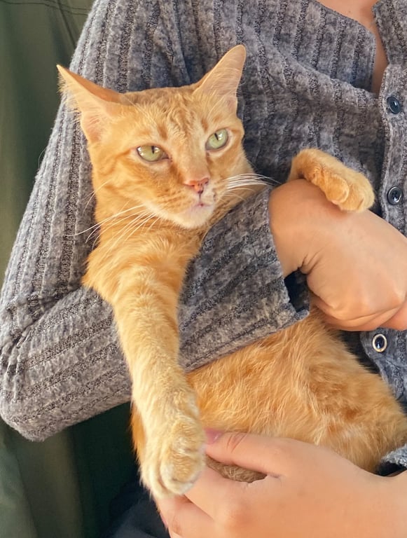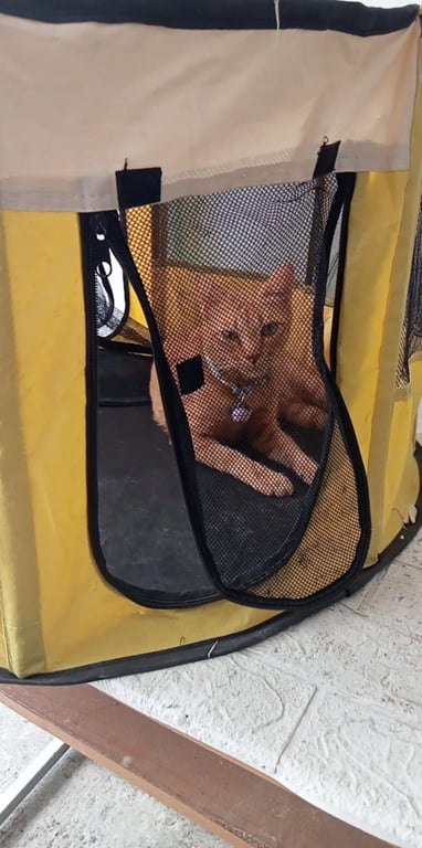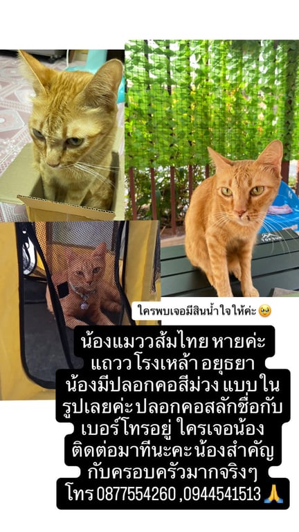 รอยตำหนิ: มีรอยแผลลตรงขาน้องมีปลอกคอสีฟ้า ปลอกคอสลักชื่อ คำเบอร์โทรเจ้าของไว้