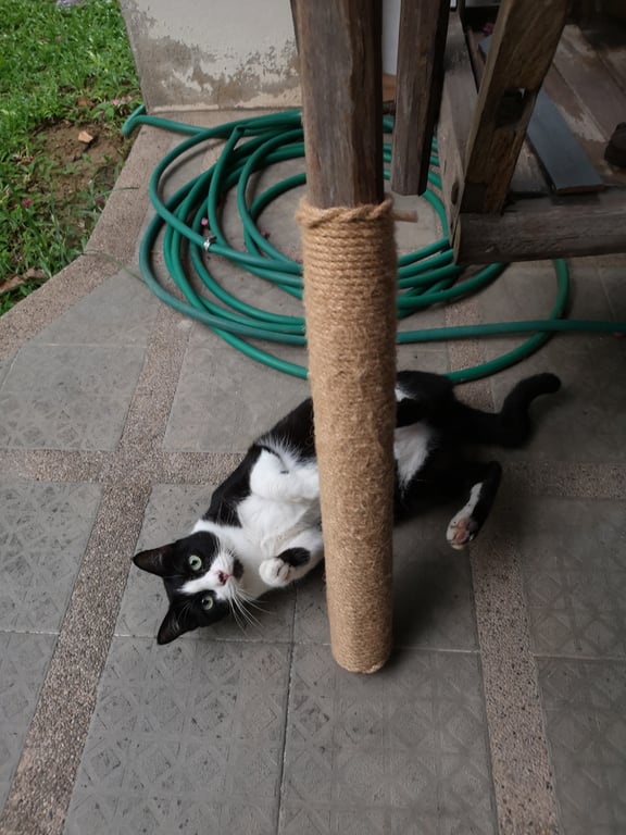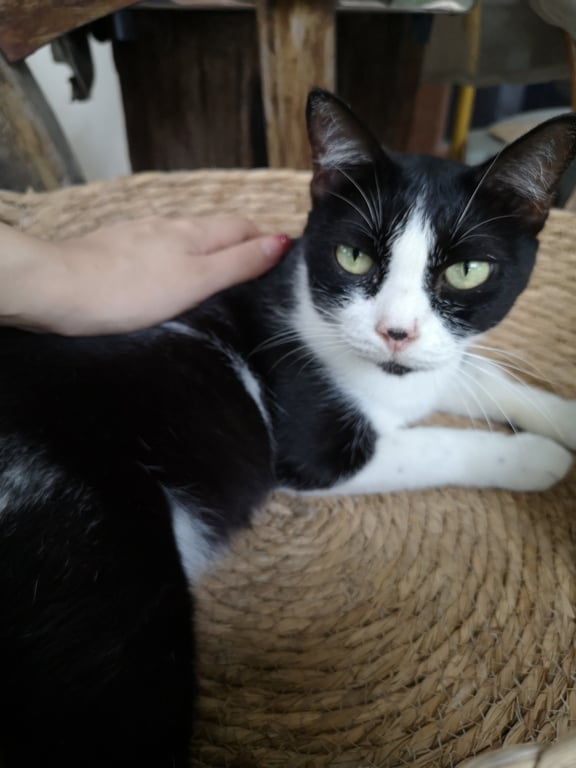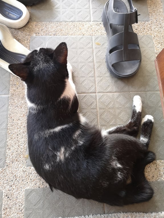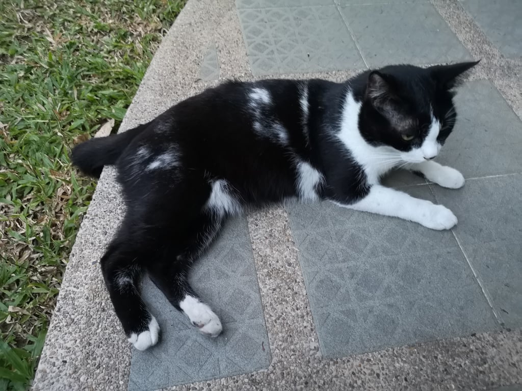 รอยตำหนิ: หางหักแมวหน้ากากสีขาวดำ ตาสีเขียว เคยเป็นจรมาก่อน ไม่ทราบอายุ อยู่ในระบบเปิดมาตลอด เอาตัวรอดเก่ง หางหักครึ่งเห็นได้ชัด เหมือนจะรู้ชื่อตัวเอง เรียกสาวแล้วหัน