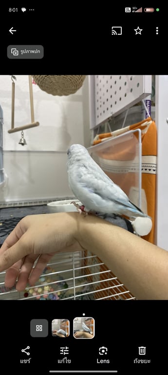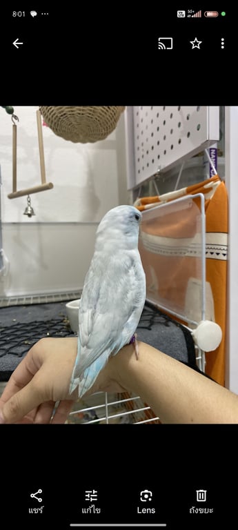 รอยตำหนิ: ขอบปีกสีเทา มีลายเป็นเกล็ดที่ปีกพูดได้คำว่าคุกกี้ และหัวเราะได้